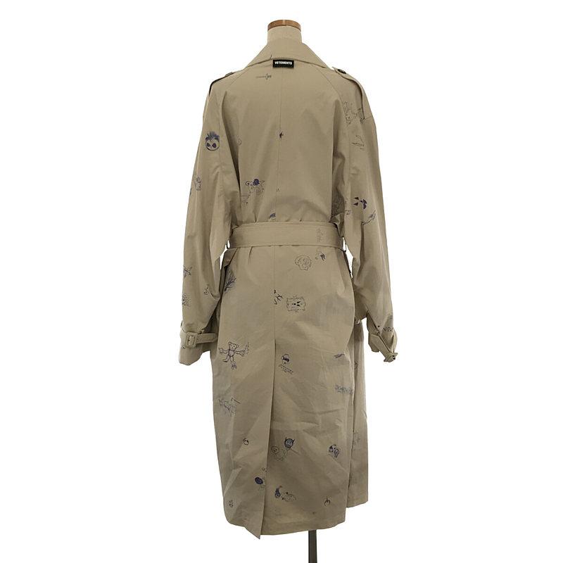 【新品】 VETEMENTS / ヴェトモン | スクリブル プリント トレンチ コート | XS | ベージュ | レディース