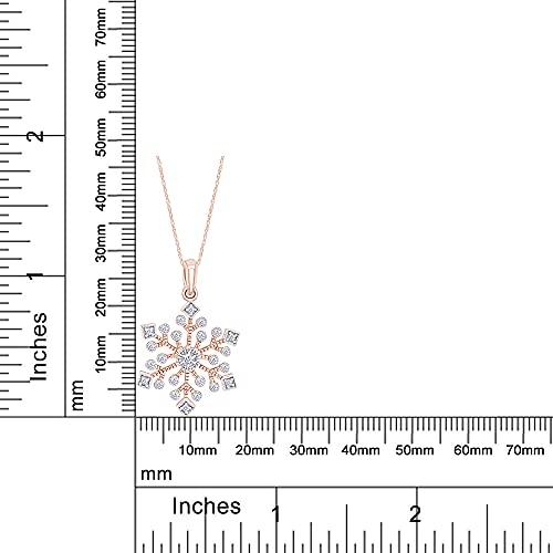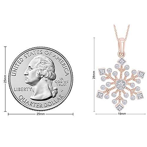 ・自然にインスパイアされた美しさをあなたのルックスにプラスします スノーフレークペンダントネックレス 14Kローズゴールドのスターリングシルバーは、0.20カラット(Cttw)ラウンドシェイプホワイト天然ダイヤモンドであなたのコレクションに際立った追加になります。