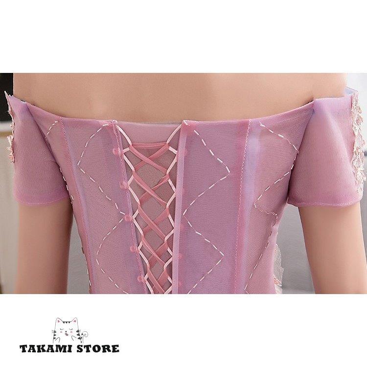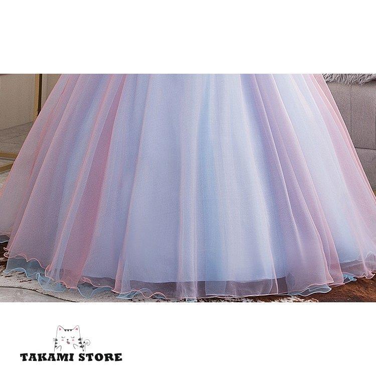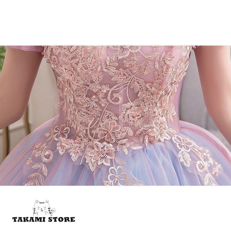 ウエディングドレス カラードレス 二次会 花嫁 ロングドレス 大きいサイズ 3L オフショルダー 袖あり 半袖 レース プリンセスライン マキシ丈 チュール 刺繍の詳細情報