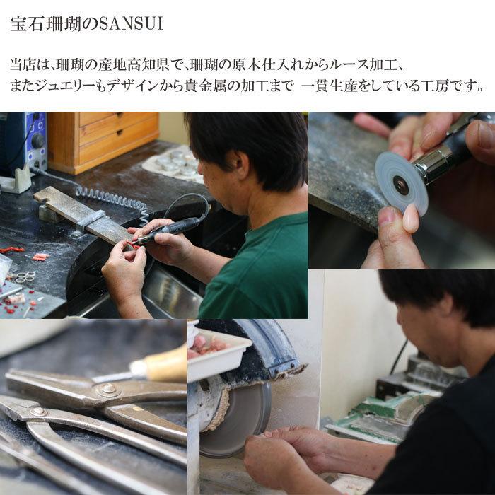 当店は、その高知で珊瑚の原木仕入れからルース加工まで、またジュエリーもデザインから貴金属の加工まで 一貫生産をしている工房です。