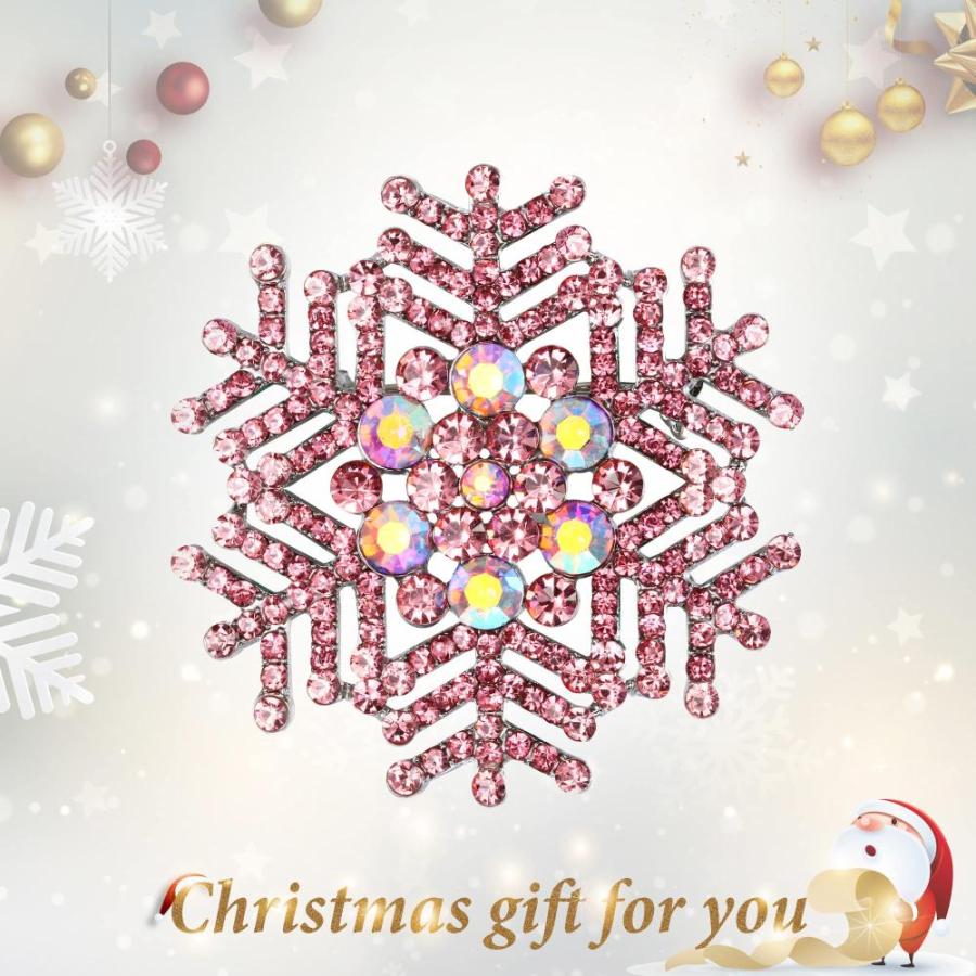 • EVER FAITH レディース ホリデーコサージュ ジュエリー 冬 クリスタル フラワーピン スノーフレーク ブローチ ピンク
