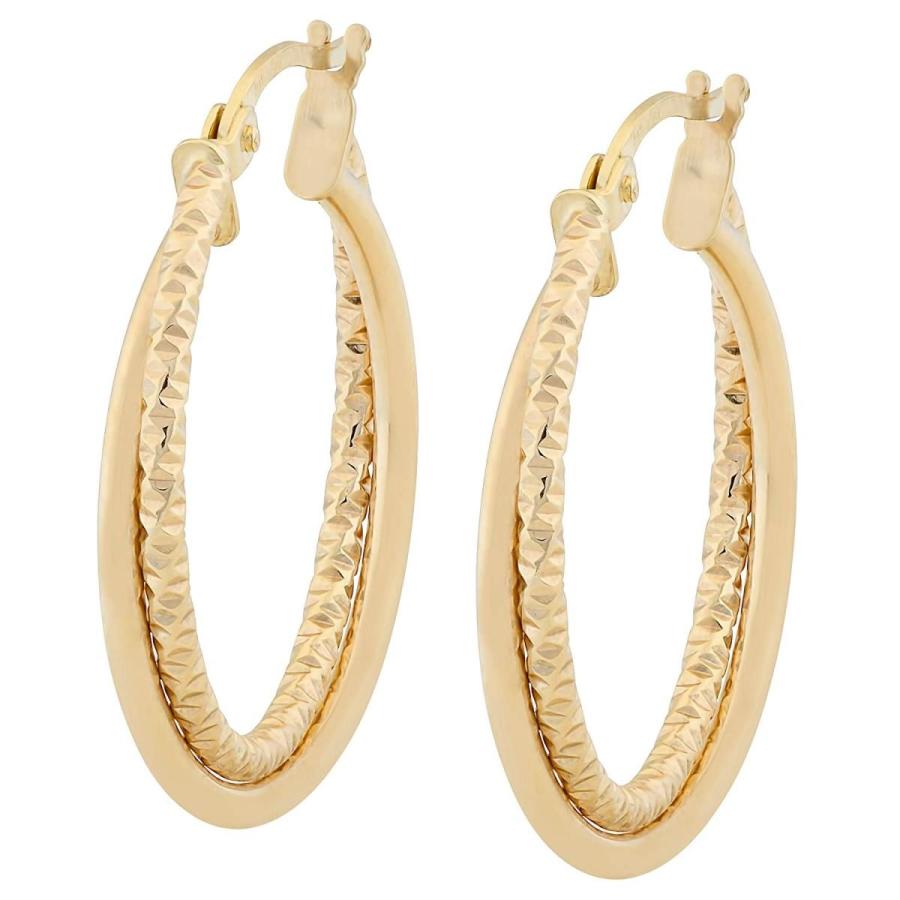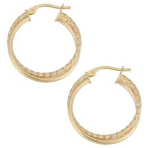 10k Yellow Gold 2x20mm Polished And Diamond-Cut Round Double Hoop Earrの詳細情報