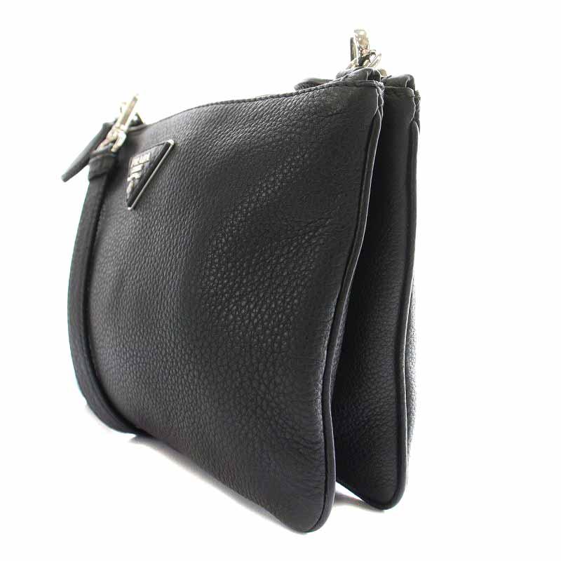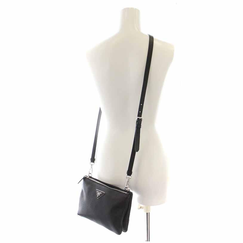 プラダ PRADA VIT.DAINO ショルダーバッグ レザー ダブルファスナー NERO 1BH011 /YI8 ■OH レディース